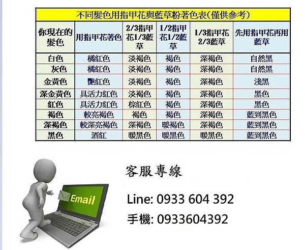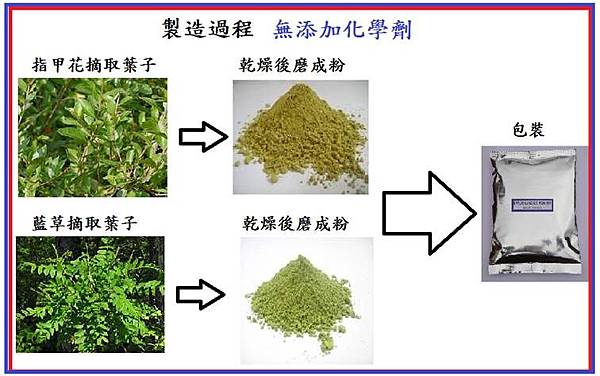 - 您若是混和兩種產品,想變成深褐色、褐色等…只需用調和的指甲花與藍草一直用下去,根本不需要再單獨使用指甲花!顏色會持續!