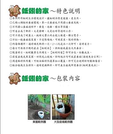 - 蚯蚓包內,已放置足夠飼料與蚯蚓喜愛的生活環境物質,無須額外放置泥土。