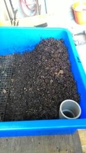 經過一段時日後,在養殖箱底部,自然會累積出高純度之蚓糞供使用,如採用本手冊之雙層養殖箱,則日後蚓糞,可自然下漏至外箱,方便我們使用。此種養殖方式,可防止生蟲或是因廚餘發酵而產生的種種問題,並可避免因用手去碰觸糞土,而弄髒雙手,此法也適合剛入門的新手及家庭養殖,水分控制好的話(底部不可積水),蚯蚓養殖成功率達90%。