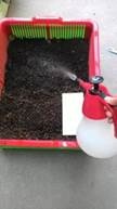3.澆一瓢水約2公升,將蚯蚓糞便沖洗下去。