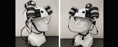 以3具旋轉式磁場儀做成的治療腦癌頭盔,竟成功縮小了最惡性的腦腫瘤。(圖/Houston Methodist Hospital)